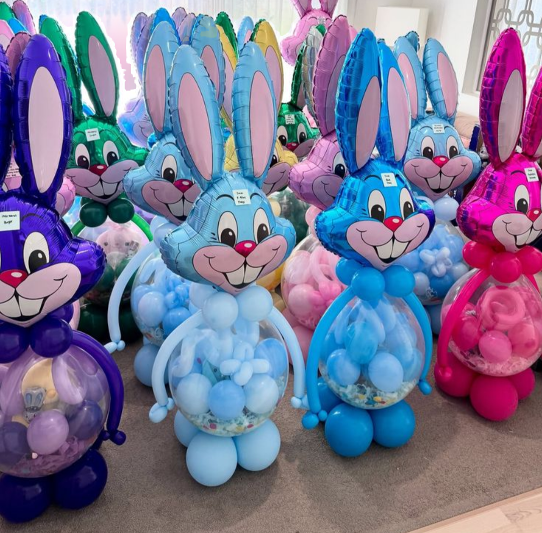 Tête de lapin géante en ballons 35+ Coco plastique + surprise